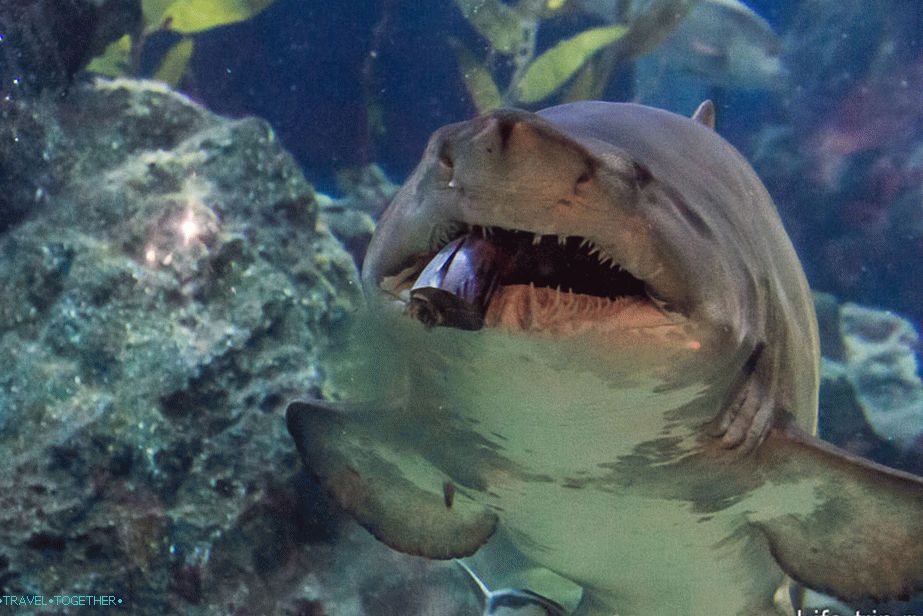 Jedným z najživších dojmov bolo kŕmenie žralokov. Ja som pozrel rozvrh, kedy to bude (2-krát denne), špeciálne obsadené pohodlné sedadlá a čakali na predstavenie. Akvárium, v ktorom sa táto akcia uskutočnila, bolo veľmi veľké celá stena pred ním – lavice, ako v amfiteátri, takže všetko bolo dobre viditeľné.