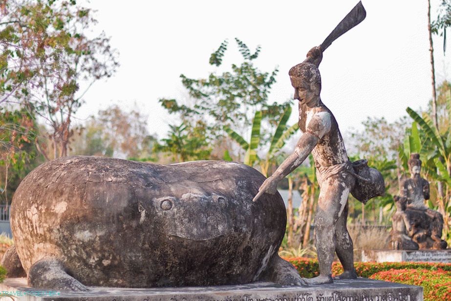 Z nejakého dôvodu polovica sôch v parku Sala Keoku nie je budhistická krvilačný. Ten meč v ruke, sekera alebo sekera a dokonca aj hlava nasekané Čo to znamená?