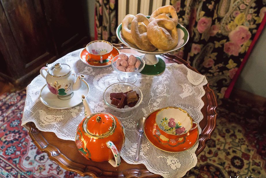 Oveľa viac ako kaviareň v múzeu. Rovnaký sprievod pekné kovové stoly s kučerami, drevené štiepky pod stopy – Romance! Obzvlášť dobré piť čaj v tieni, keď vonku je horko. Naozaj príjemná atmosféra a čo je najdôležitejšie zadarmo. Presnejšie platiť za to, čo si kúpite. Napríklad čaj podľa Dostoevského to stojí 85 rubľov (šálka čaju a 3 kusy marshmallow) keď príde) Lopta na zmrzlinu 60 rub. Avšak dosť božské ceny marshmallow mawed znova stlačený