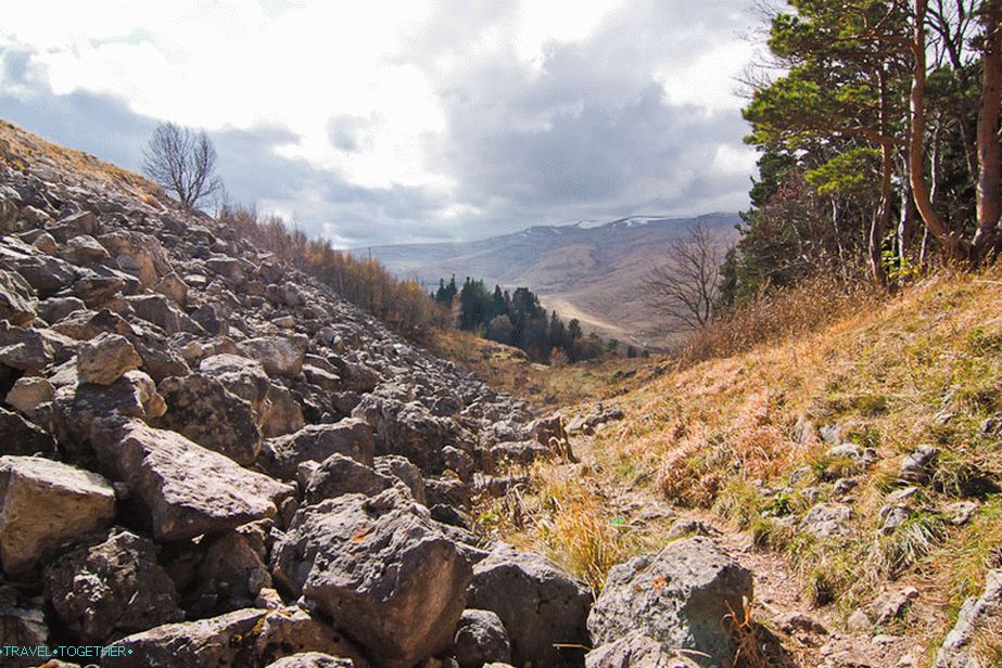 Priťahuje tu skutočnosť, že asfaltová cesta vedie na vrchol davy návštevníkov, z ktorých väčšina prichádza vyhliadkové autobusy z pobrežia Čierneho mora. V októbri tu bolo to pokojné, sezóna už skončila, táborníci odišli, rytmus spomalil. Kedysi som bol už tu, len medzi nimi pozorovatelia, ale spomínala sa iba na azskú jaskyňu, áno Tucet fotografií hroznej kvality z krabice na filmové mydlo. Pre mňa zdá sa byť skvelé, že každý, aj keď nemilujúci turistiku môže byť v tejto výške a užívať si výhľad na hory. Ja nie Viem, že v našej krajine stále máme niečo podobné. Ako som pochopil táto cesta sa pôvodne začala budovať, aby ju priniesla niekde smerom k Soči a potom opustený projekt bol zmrazený. Cesta teda v podstate nevedie nikam.
