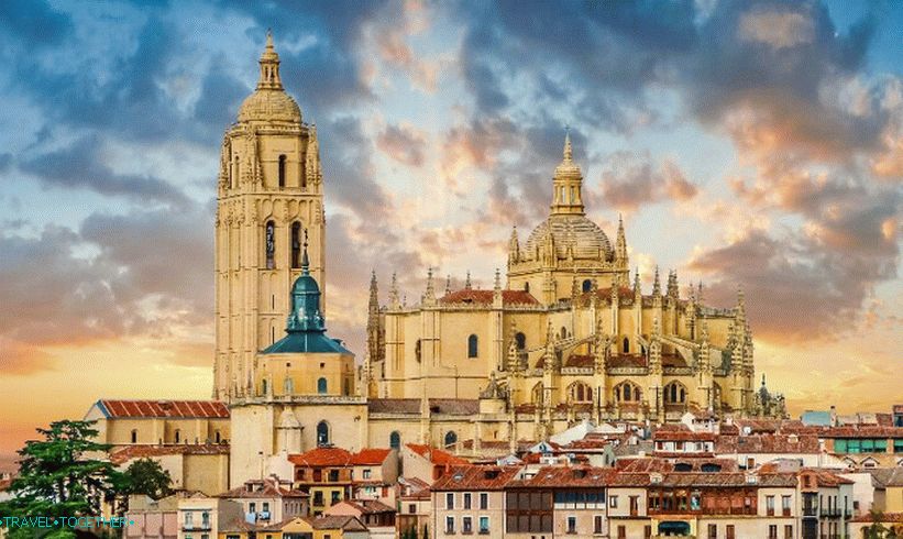 Katedrála je veľkolepý neskoro gotický kostol, sa nachádza v najvyššom bode Segovia. Bola postavená katedrála 16. storočia a je považovaná za poslednú náboženskú budovu v gotike štýl v Španielsku. Budova je postavená zo žltého kameňa, má nádherná architektúra, krásna fasáda, okná z farebného skla a bohaté interiéru. V architektúre vyniká vysoký 100 metrov. veža. Nádherné sochy, umelecké diela a oltáre zdobia početné kaplnky katedrály, ktoré sú uzavreté mrežami. Hlavný oltár je vyrobený z mramoru, jaspisu a bronzu. V katedrále tiež Existuje archív, v ktorom je uložených viac ako 500 starožitných kníh. Katedrála Segovia sa nachádza v centre mesta na námestí Plaza Mayor staré mesto. Táto oblasť je labyrintom vinutia stredoveké uličky, ktoré stoja za preskúmanie.